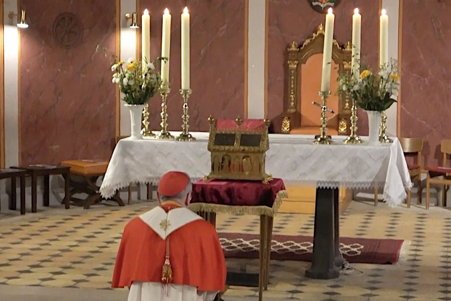 Under ledelse af organist og korleder Rolf Tönshoff synger koret den klassiske pinse- og bønssalme “Nu bede vi den Helligånd”, mens Vatikanets statssekretær Pietro Parolin skrider ind i Sankt Ansgar Kirke. Salmen samler menighed, kor og liturgi i en fælles påkaldelse af Helligåndens nærvær ved begyn...