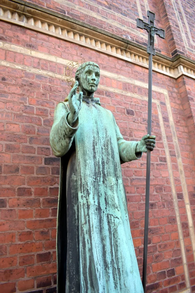 Skulpturen er placeret til højre for indgangen til den katolske domkirke Sankt Ansgar i Bredgade i København.