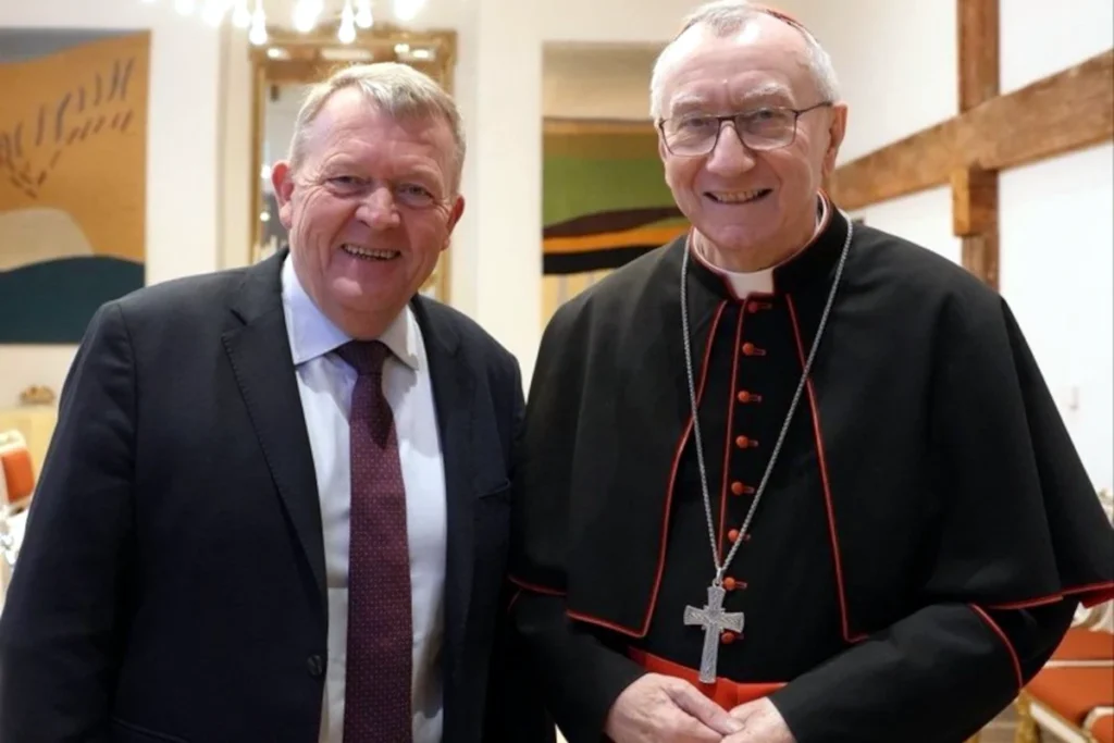Under sit ophold i Danmark lagde kardinal Pietro Parolin også vejen forbi Udenrigsministeriet, hvor han mødtes med Danmarks udenrigsminister Lars Løkke Rasmussen til samtaler om internationale relationer, fredsarbejde og religionsfrihed.