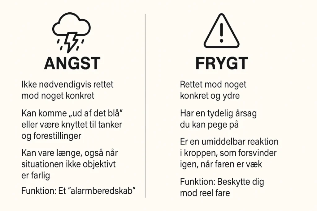 - Angst = indre alarm uden en tydelig ydre trussel.